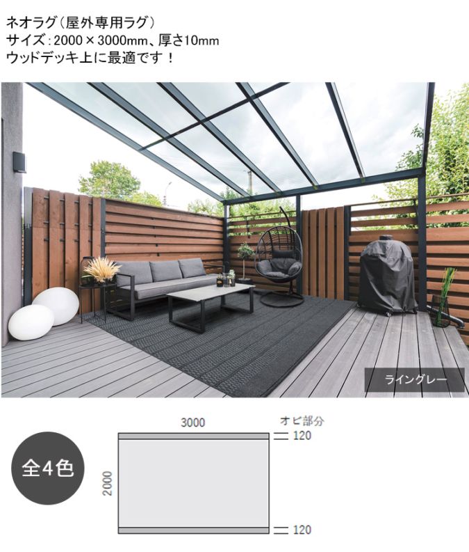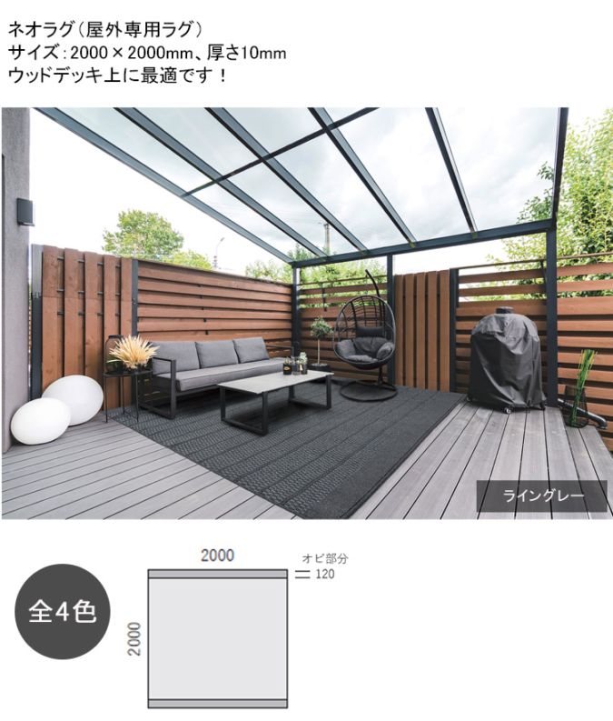 新製品!ネオラグ(ウッドデッキ上に最適な屋外専用ラグ)※サイズ:2000×2000×厚み10mm【防炎生地 ガーデンラグ ウッドデ...