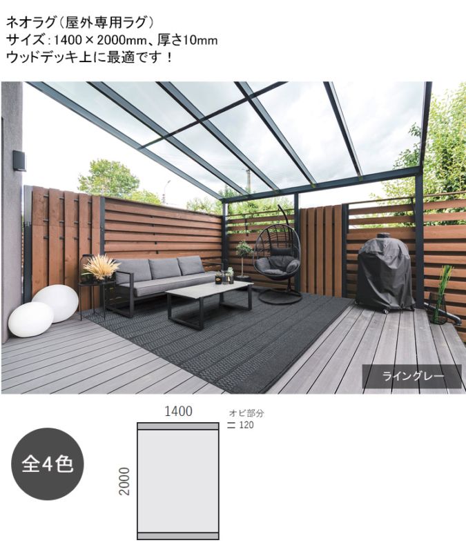新製品!ネオラグ(ウッドデッキ上に最適な屋外専用ラグ)※サイズ:1400×2000×厚み10mm【防炎生地 ガーデンラグ ウッドデ...