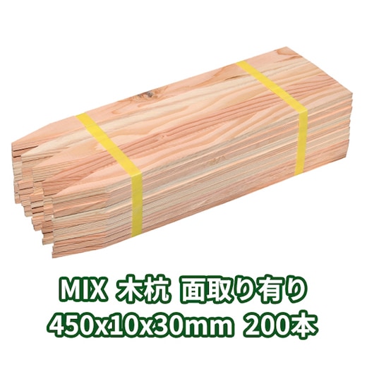 木杭 450mm×10mm×30mm 面取り有り 200本入り MIX 1本約50円
