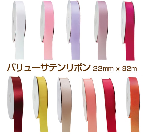 ≪送料無料≫22mm×92m【1本から送料無料】花屋さんで使われているバリューサテンリボン全10色