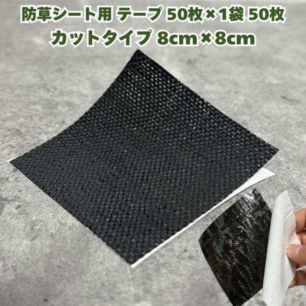 防草シート用補修テープ カットタイプ 8cm×8cm 50枚 ピン穴修理 ブラック 黒色 接続テープ 防草テープ 粘着テープ 除草...