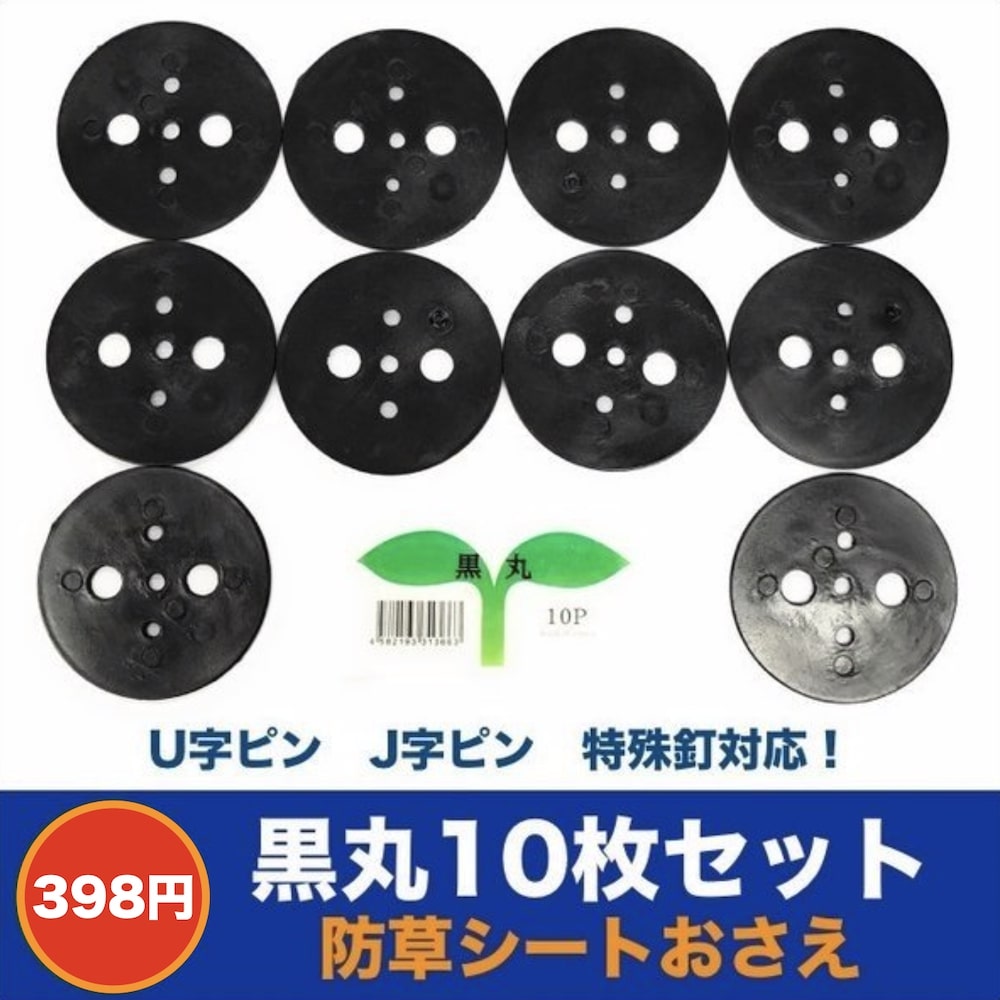 黒丸10P 防草シート人工芝の固定用押さえ 5穴 ピン別売 シートピン 杭 特殊釘対応