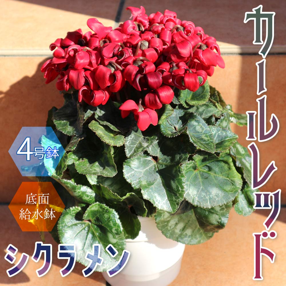 シクラメン カールレッド【花苗 開花株 4号 底面給水鉢/1個売り】
