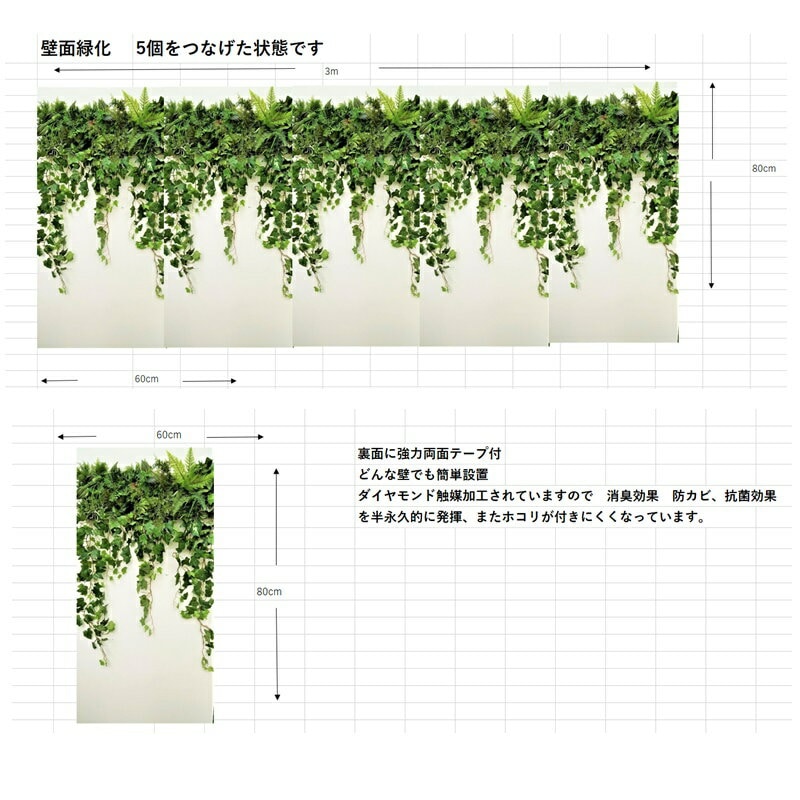 【人工観葉】【壁面緑化】【グリーン壁掛け】【触媒加工品】【送料無ープ付 幅60m縦90cm