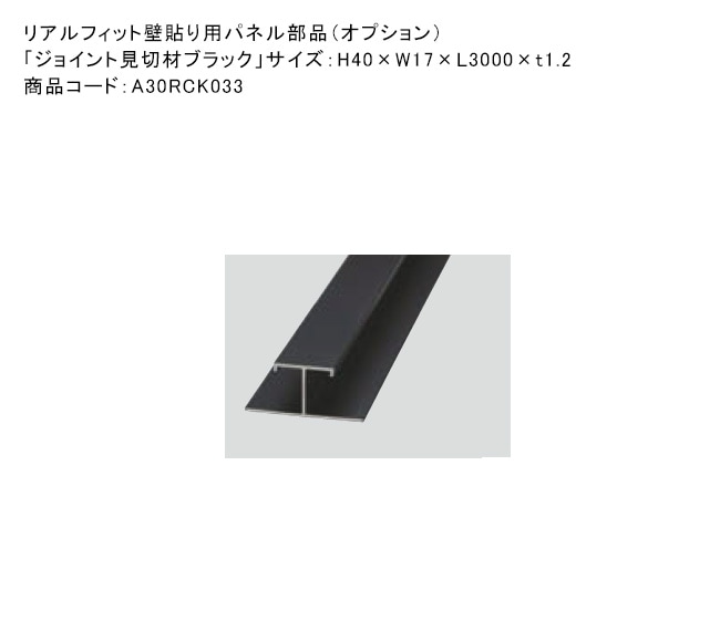 ジョイント見切材ブラック、サイズ:H40×W17×L3000×t1.2mm、品番:A30RCK033【リアルフィット壁貼り用パネル...