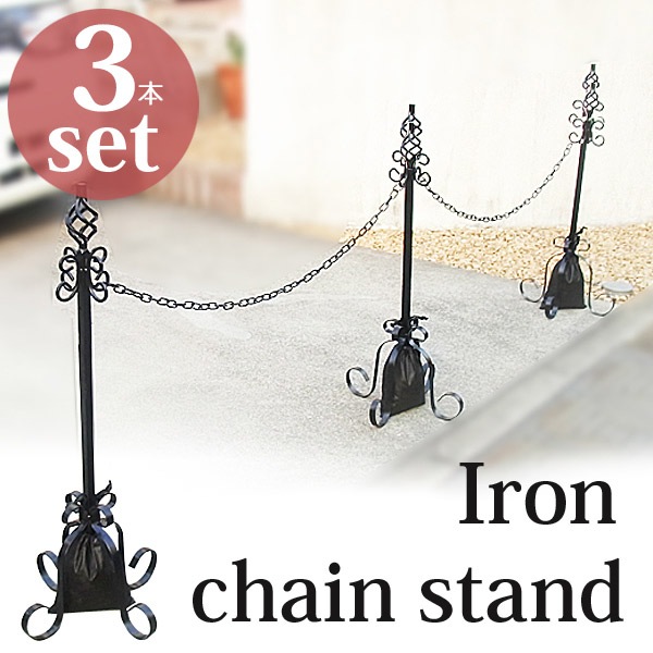 駐車場 ポール おしゃれ フェンス アイアン チェーンスタンド 本体3本+鎖2本+エストアオリジナル重り用袋3枚付き セット 駐車...