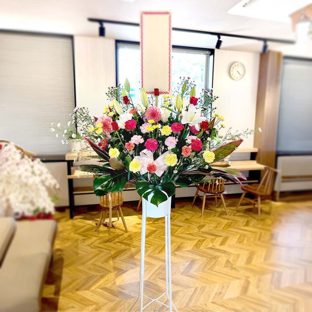 【地域限定】「想いが届く」スリムな形のスタンド花 2段 21000円
