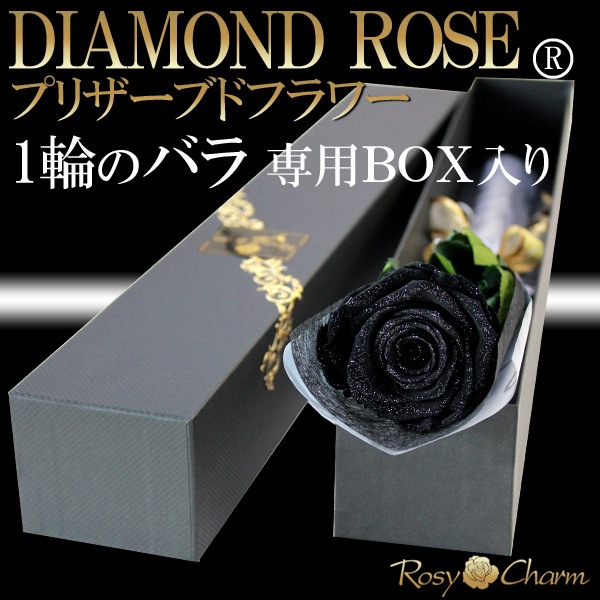 ダイヤモンドローズ プリザーブドフラワー 黒色の薔薇 1本 【ブラックローズ】|一輪のバラ
