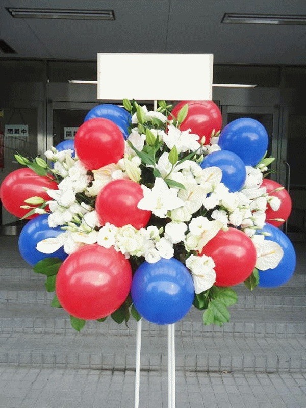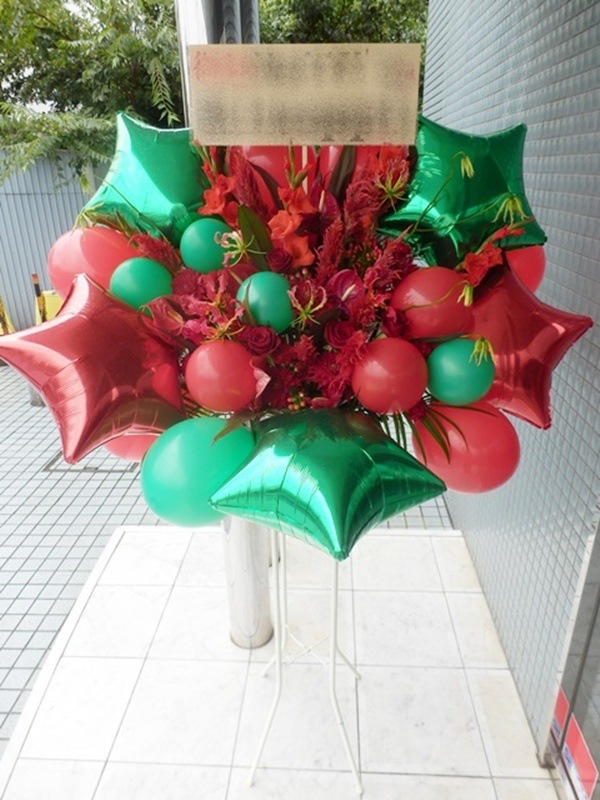 レッド系(色変更可能) happyBirthday文字バルーン付 3連結 スタンド花 2段 税込 91000円 1187st2-1...
