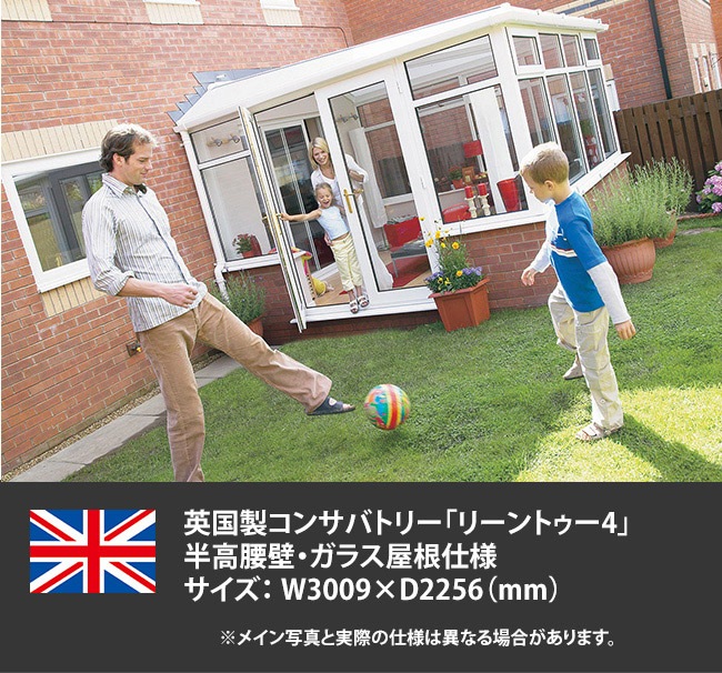 商品名:英国製コンサバトリー「リーントゥー4」サイズ:W3009mm×D2256mm 半高腰壁・ガラス屋根仕様※参考価格のため、正...