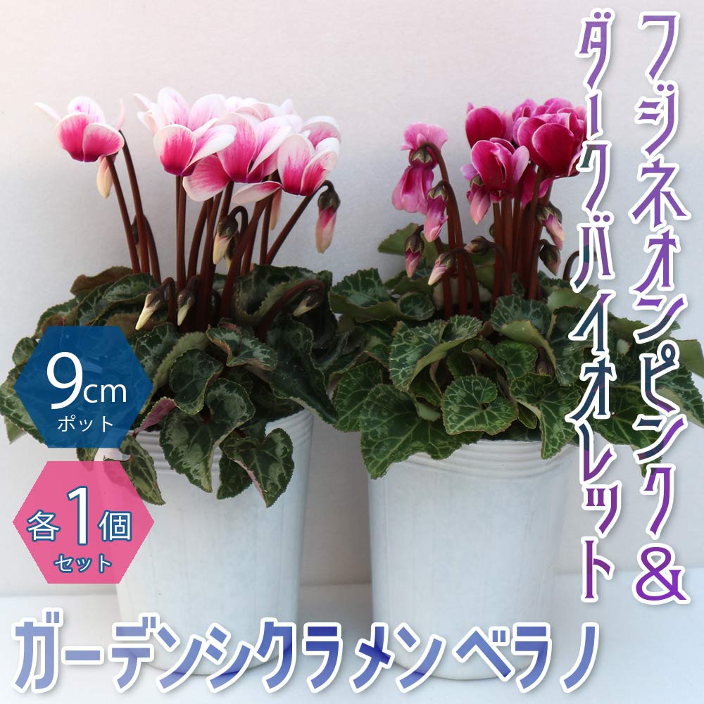 ガーデンシクラメン ベラノ フジネオンピンク&ダークバイオレット2色セット【花苗 9cmロングポット/1個売り】