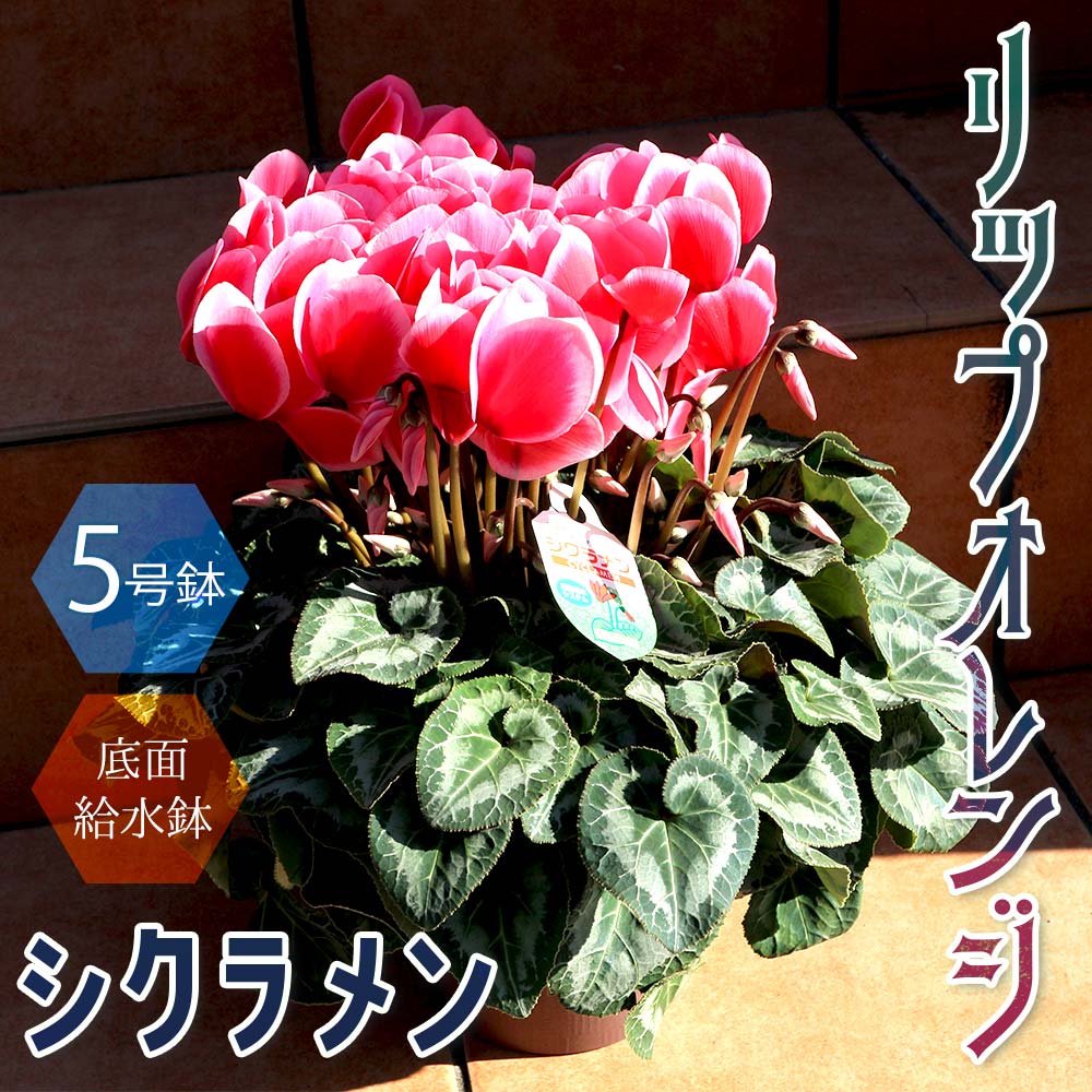 シクラメン リップオレンジ【花苗 開花株 5号 底面給水鉢/1個売り】