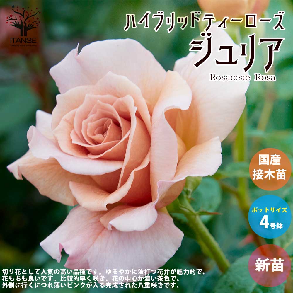 薔薇の苗 ジュリア (四季咲きハイブリッドティーローズ)【花苗新苗4号ポット 国産接ぎ木苗/1個売り】