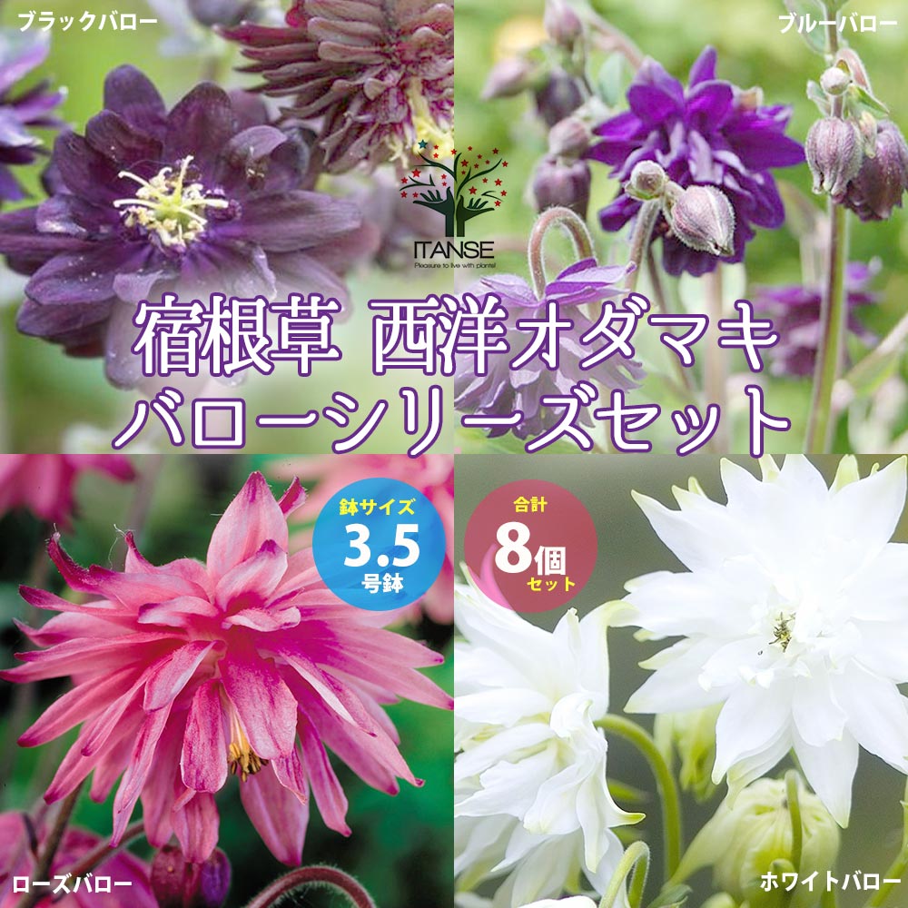 オダマキ バロー4品種【花苗 3.5号/お買い得8個セット】