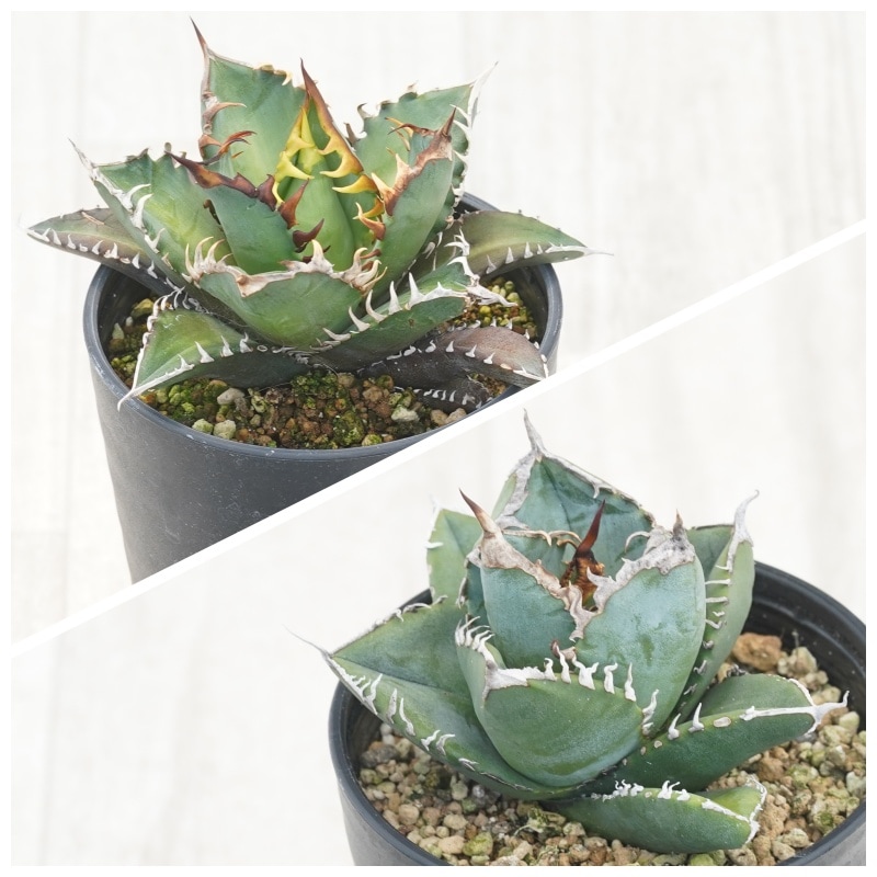 アガベ チタノタ銘品2種セット(赤猫・南アフリカダイヤモンド)3.5号鉢