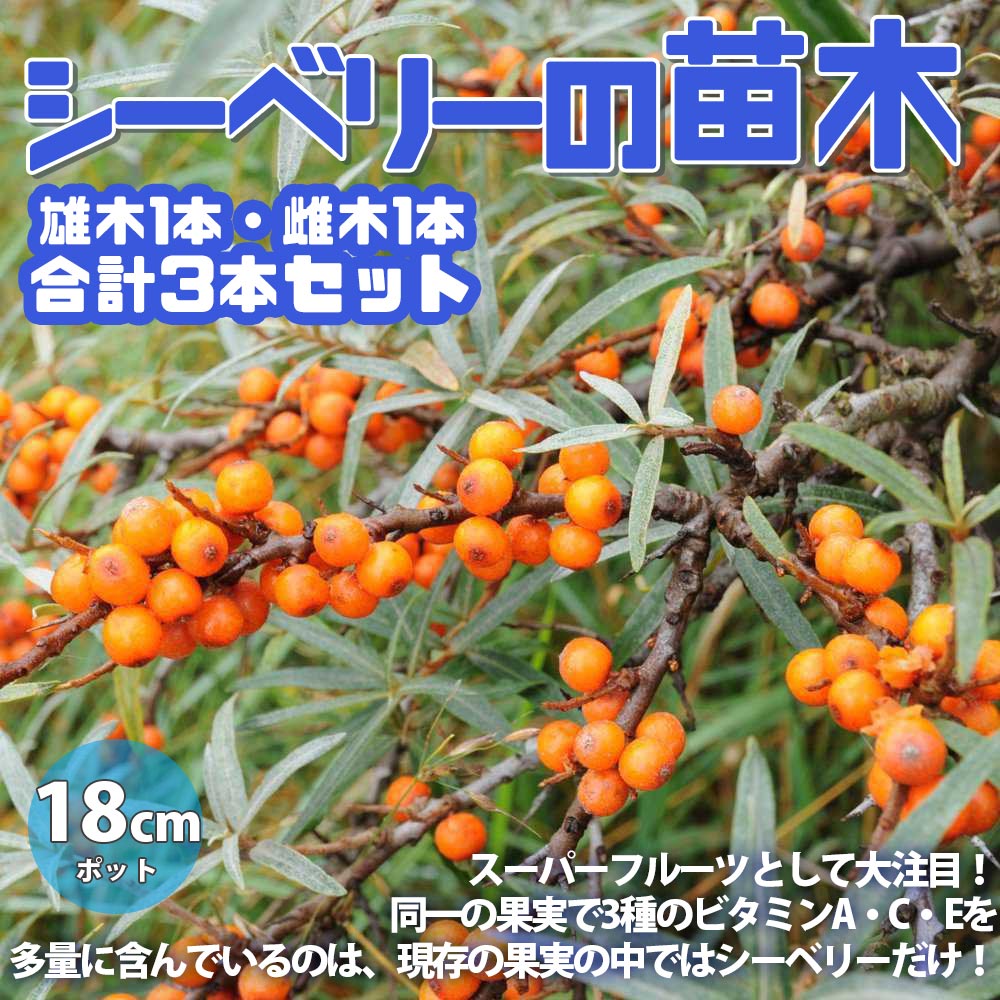 シーベリー(サジー)の苗木 セット【果樹苗 5号鉢 雄木1本雌木2本/合計3本セット(品種指定不可)】
