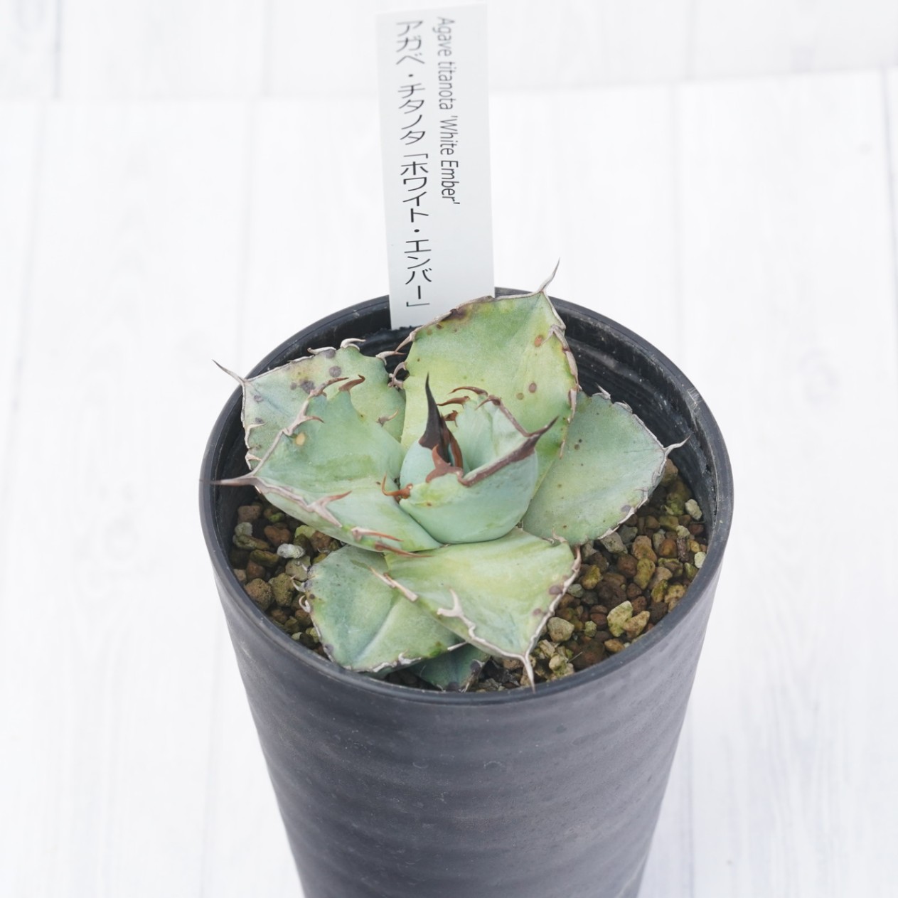【訳あり商品】アガベ・チタノタ「ホワイト・エンバー」3.5号セラアート鉢