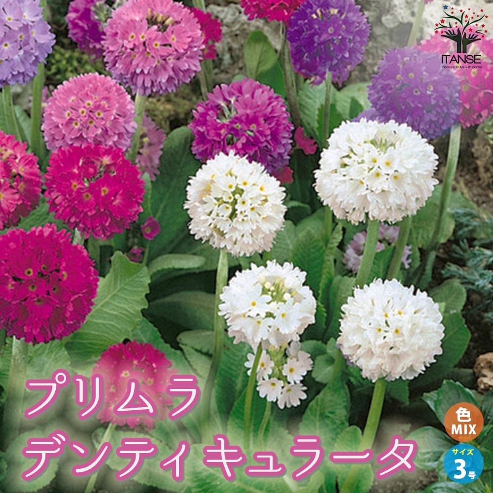プリムラ デンティキュラータ(玉咲きサクラソウ)【花苗 色MIX見計らい3号ポット】