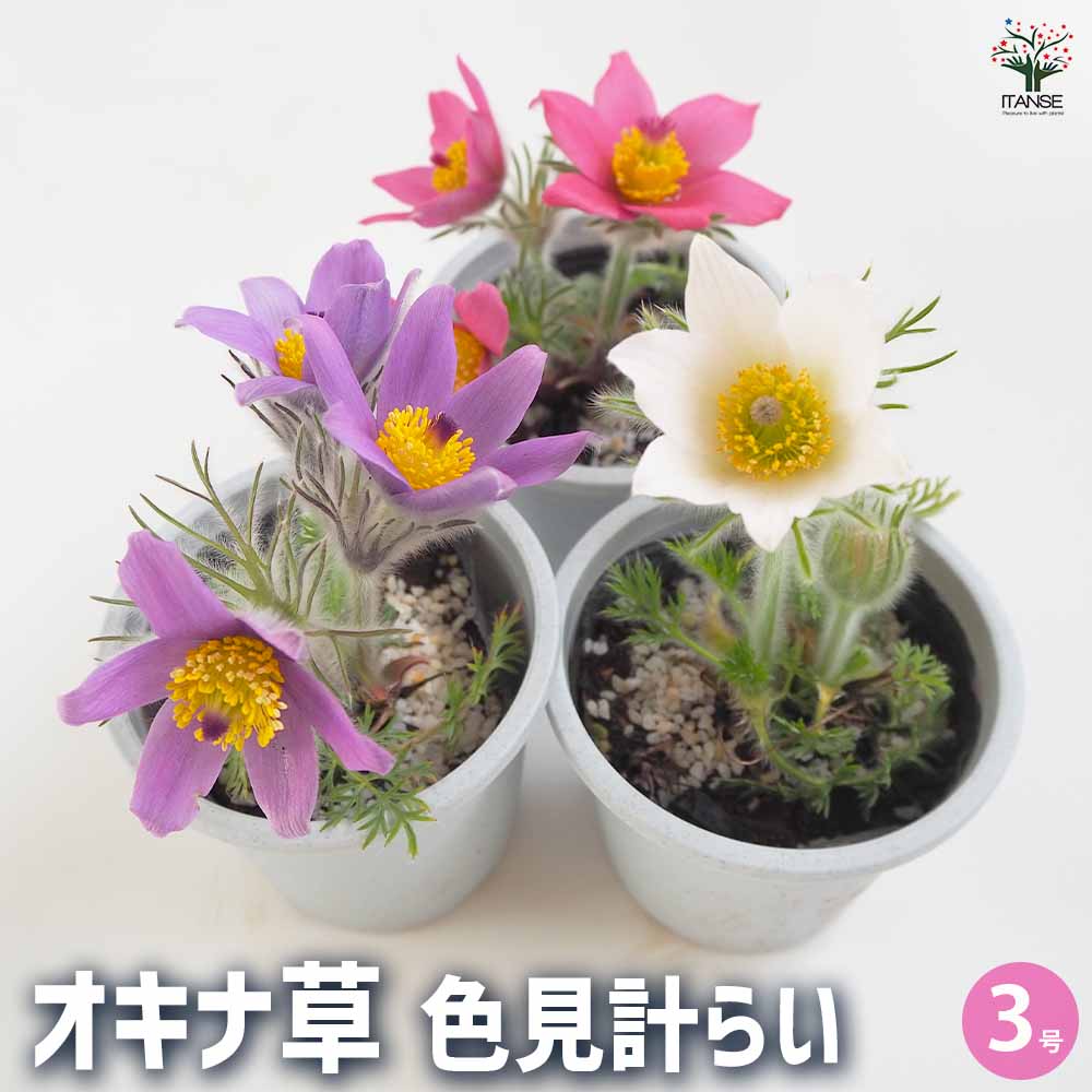 オキナグサ(翁草) 色MIX見計らい【花苗 3号ポット】