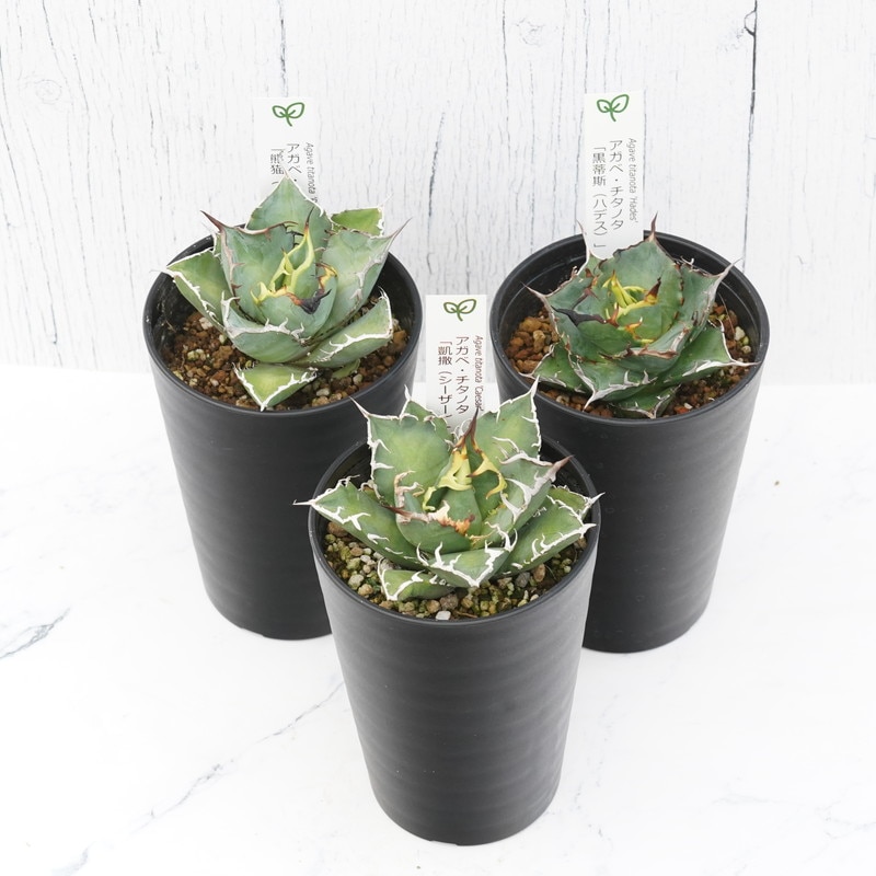 アガベ チタノタ銘品3種セット(シーザー・パンダ・ハデス)3.5号鉢