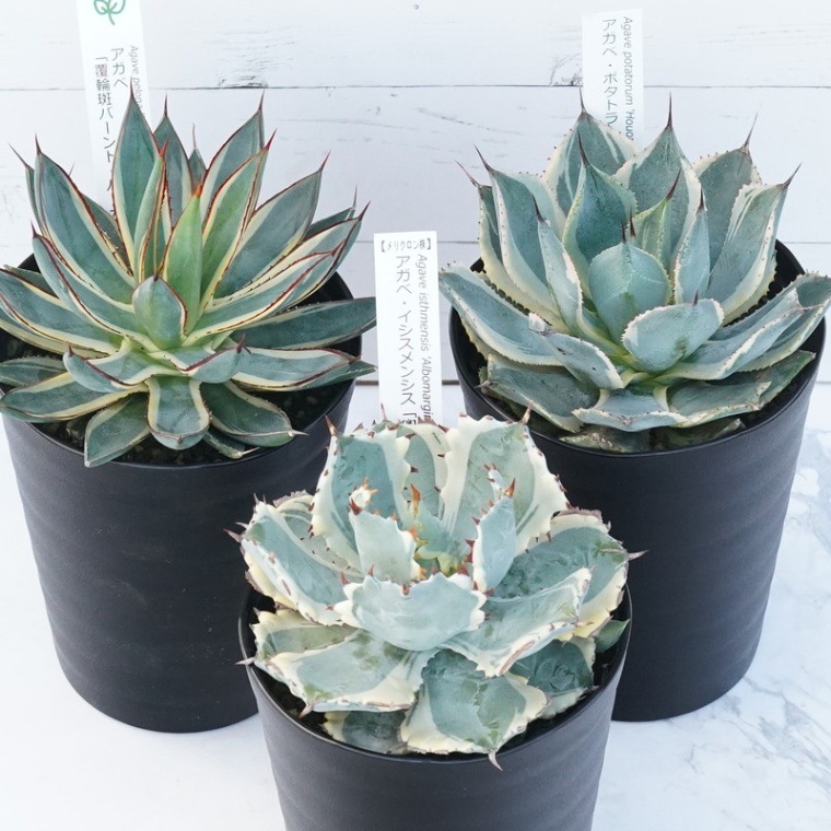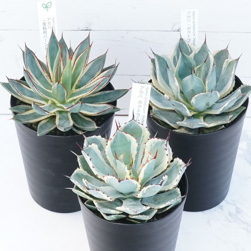 アガベ チタノタ銘品3種セット(シーザー・宝珠・シャーク)3.5号鉢