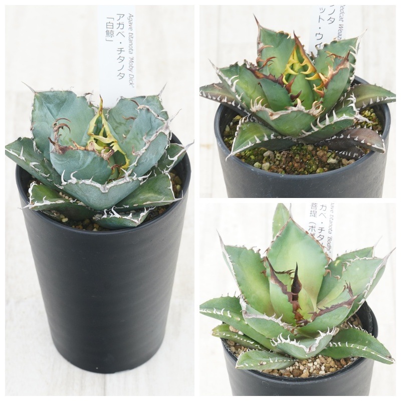 アガベ チタノタ銘品3種セット(白鯨・赤猫・シャークソード※菩提)3.5号鉢