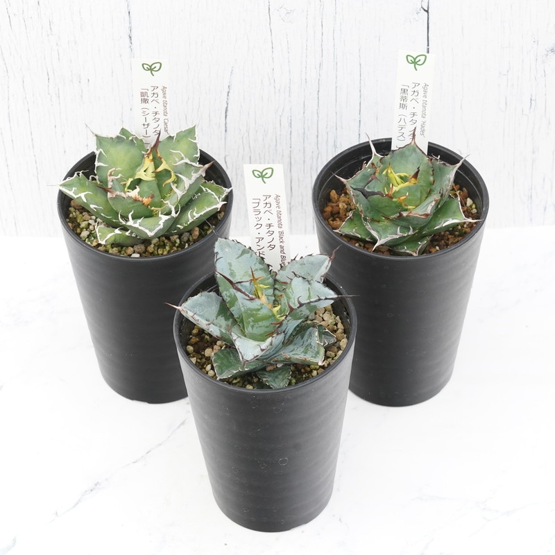 アガベ チタノタ銘品3種セット(ブラック&ブルー・シーザー・ハデス)3.5号鉢