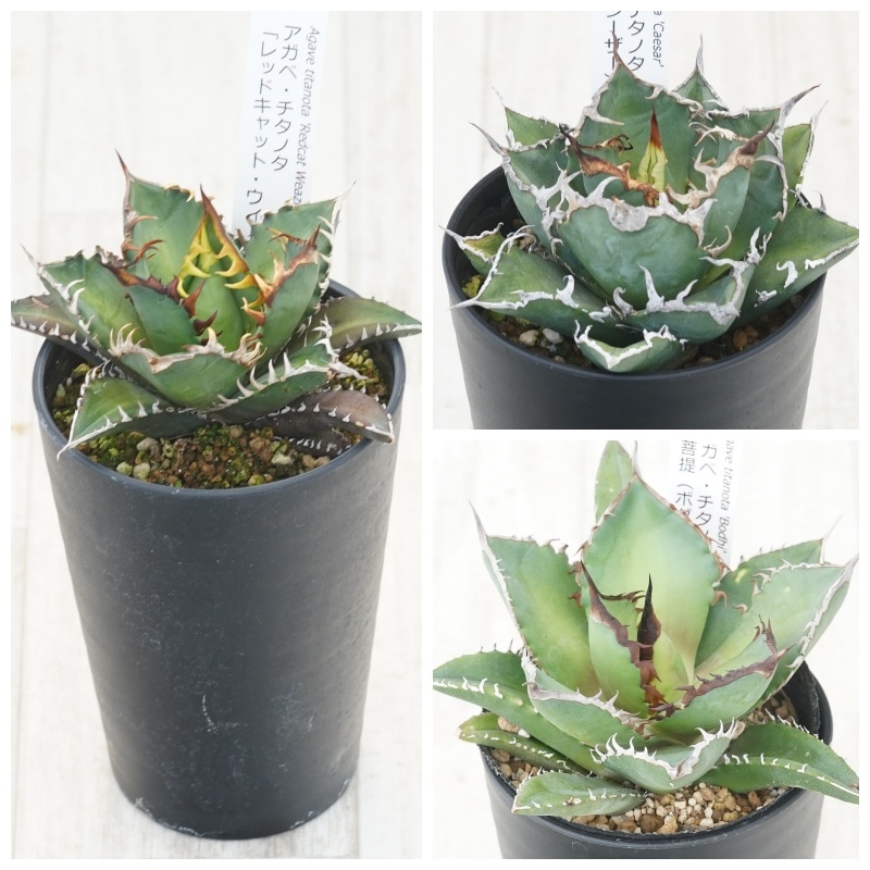 アガベ チタノタ銘品3種セット(赤猫・シーザー・フィリグリー)3.5号鉢