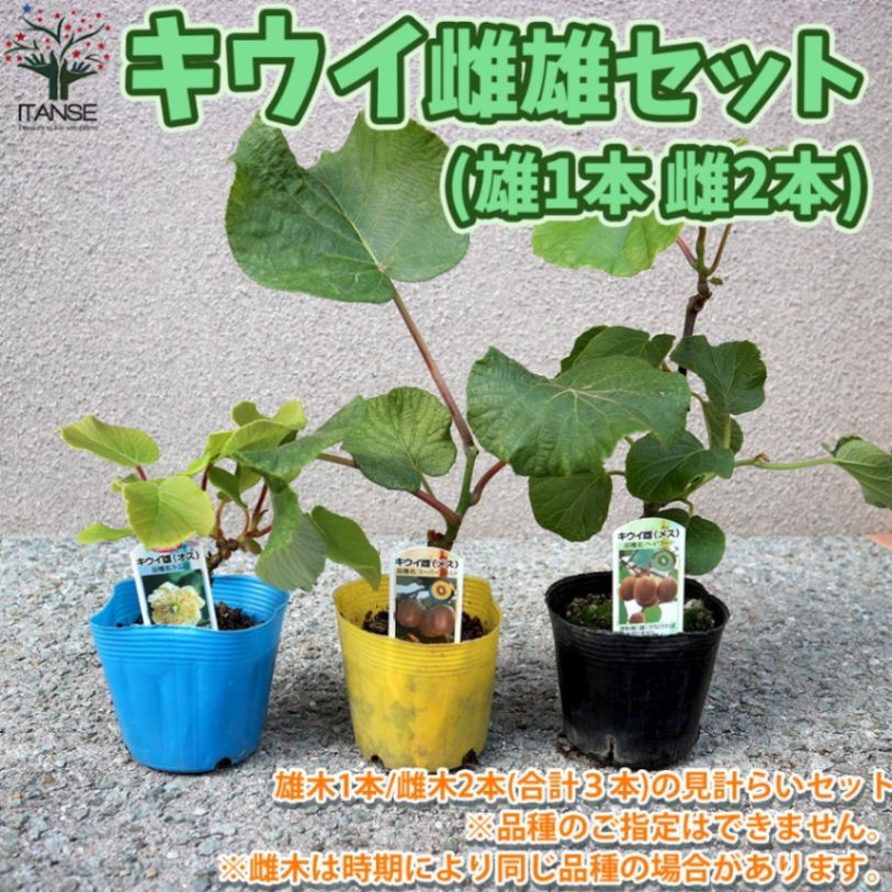 美味しいキウイの苗木 雌雄セット 雌木2本/雄木1本(合計3本)見計らいセット【果樹の苗木 10.5cm/お買い得3個セット】