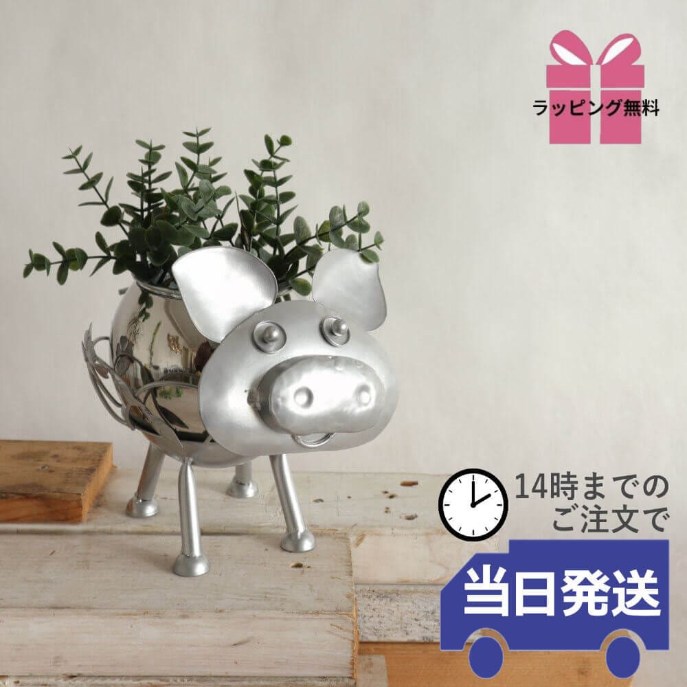 プランター 鉢カバー 3号鉢 ブタ シルバー|おしゃれなインテリアの輸入雑貨イエ【公式通販】