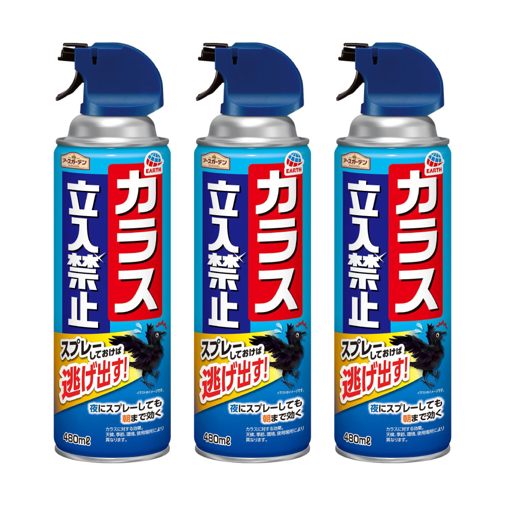カラス対策 アースガーデン カラス立入禁止 スプレー 480mL×3本 カラスよけ ゴミ置き場 ゴミ回収BOX
