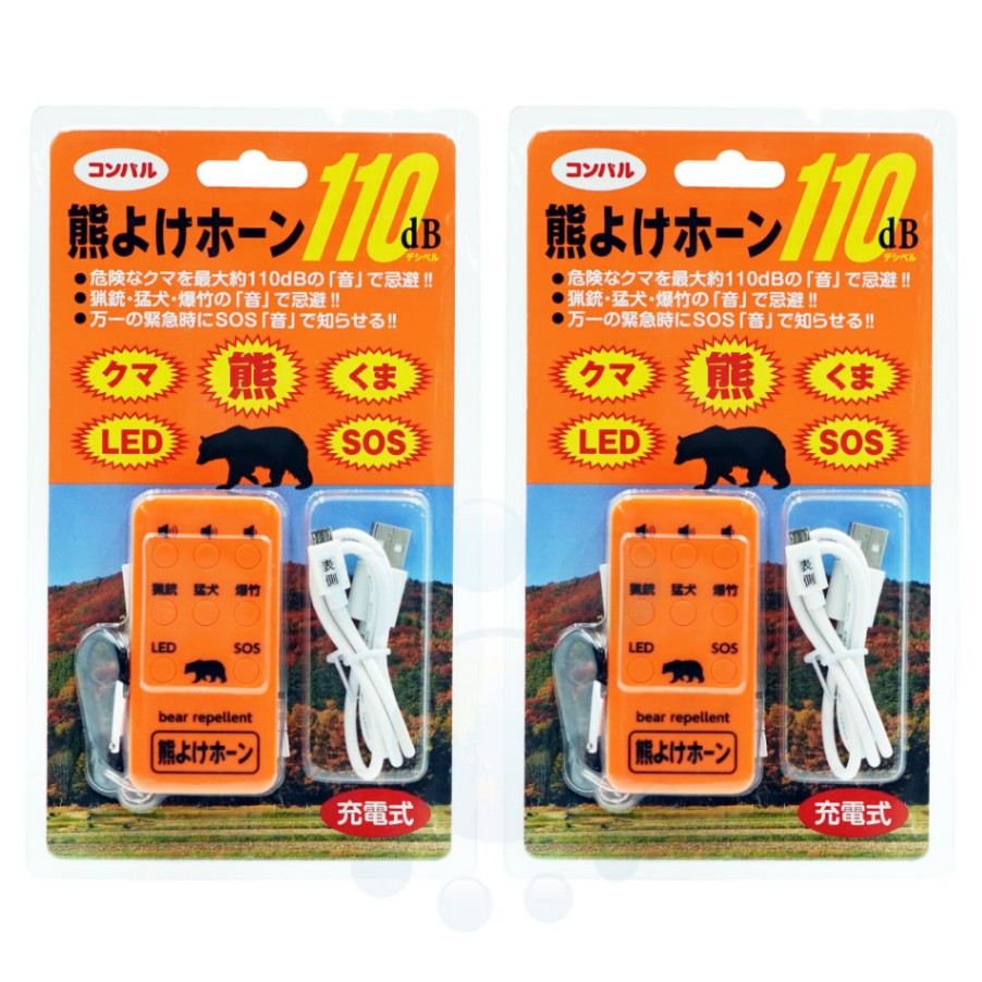 熊よけホーン×2個 110dB クマよけ 対策 逃げる 山登り キャンプ 登山 充電式 LED 大音量 警告 遭遇 回避