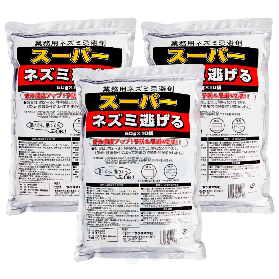 ネズミ対策 業務用 スーパーネズミ逃げる (50g×10袋入)×3袋 ネズミ忌避剤 ネズミよけ 予防 忌避 持続 侵入防止