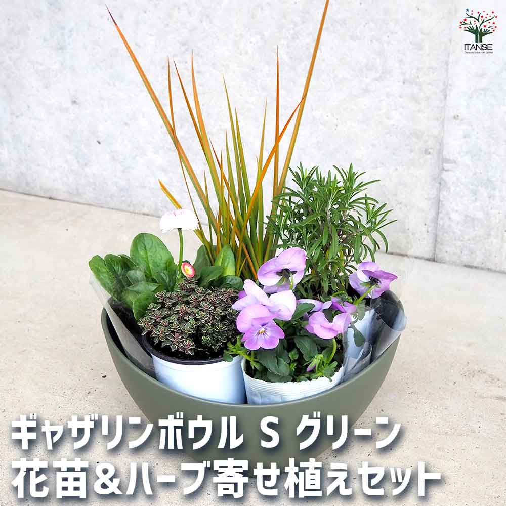 ギャザリン ボウル グリーン 【資材 Sサイズ 季節の花苗&カラーリーフ寄せ植え風 投げ込みBセット】