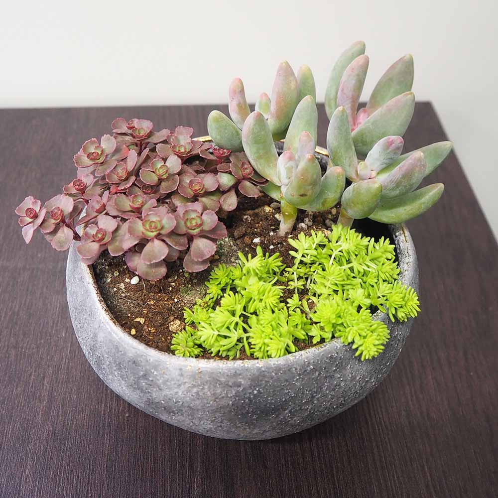 ギャザリン ボウル ダークグレー 【資材 Sサイズ 季節の花苗&カラーリーフ寄せ植え風 投げ込みCセット】