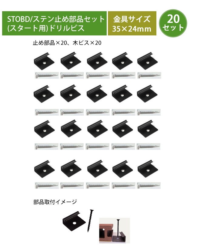 【ZEN・STデッキ用オプション部品】ステン止め部品セット(スタート用)ドリルビス 20セット(入り数:止め部品×20、ドリルビス...