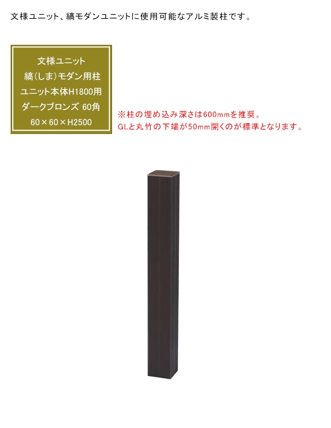文様ユニット 縞(しま)モダンH1800用 専用柱、カラー:ダークブロンズ、サイズ:60×60×H2500mm、入り数:1本単品部...