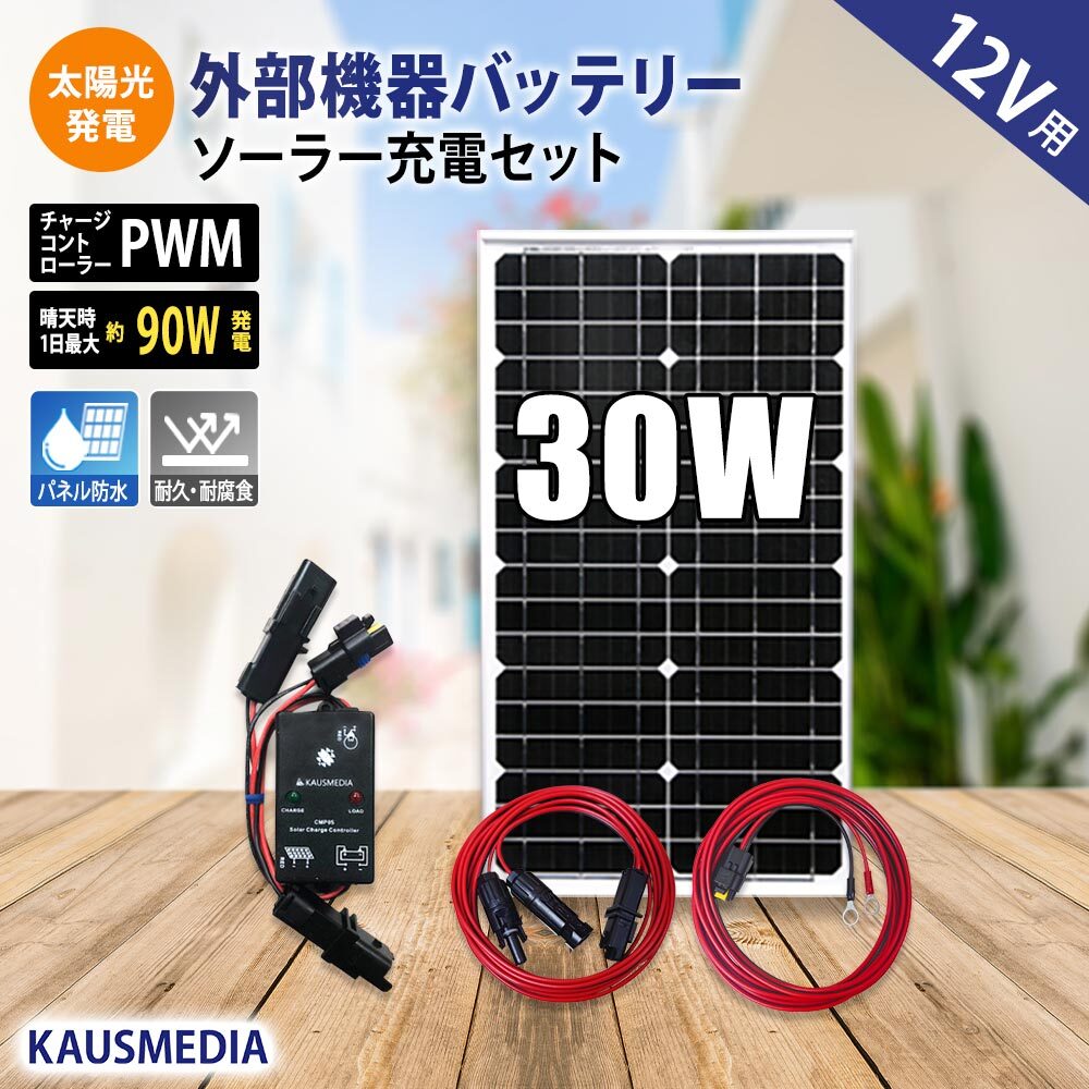 30W ソーラー充電 ケーブルセット 防水コネクタ付 車 維持充電 発電蓄電 バッテリー充電 電気柵バッテリー用 12V 充電