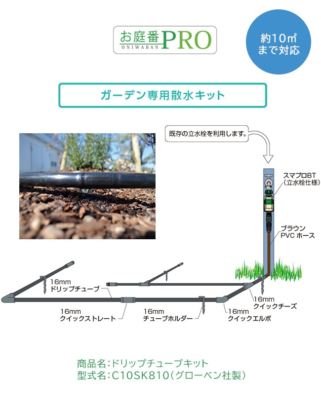 ドリップチューブキット 型式名:C10SK810【DIY自動散水システム お庭の広さ:約10平方メートルまで対応 お庭番PRO ガ...