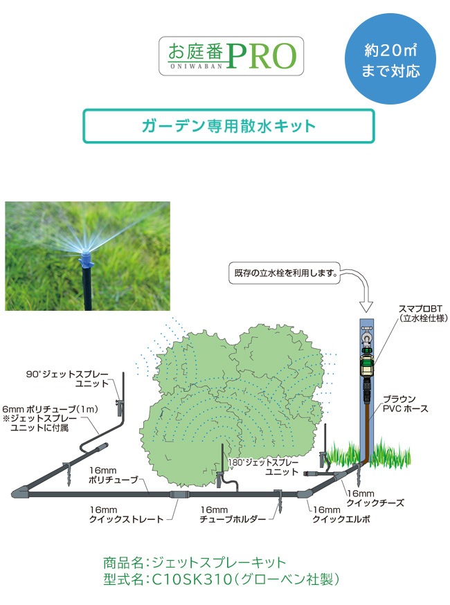 ジェットスプレーキット 型式名:C10SK310【DIY自動散水システム お庭の広さ:約20平方メートルまで対応 お庭番PRO ガ...