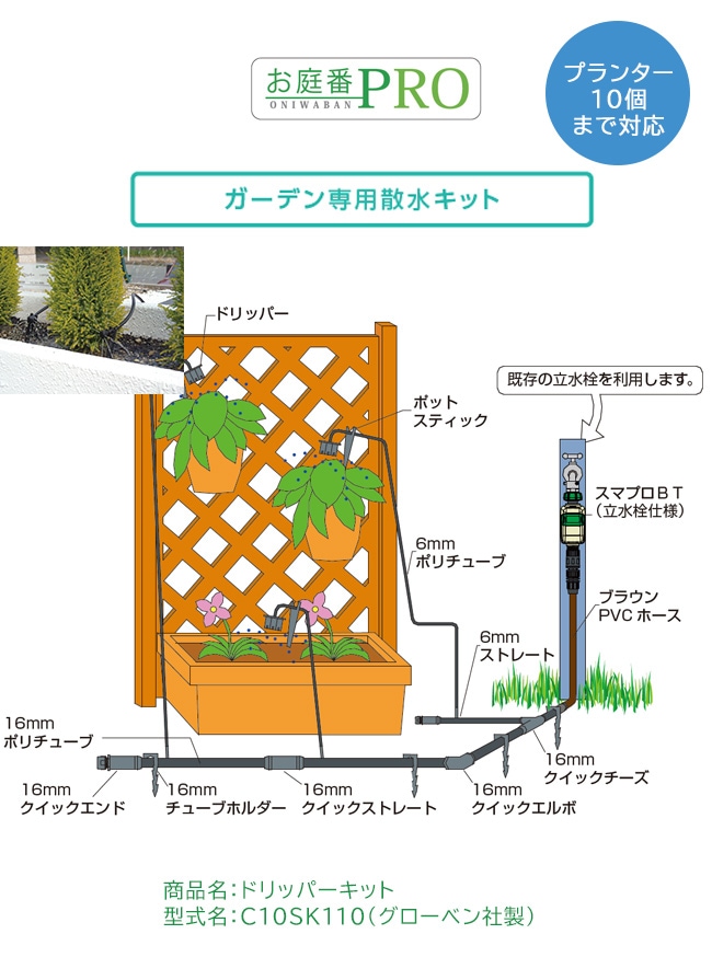 ドリッパーキット 型式名:C10SK110【DIY自動散水システム 適用範囲:プランター10個まで対応 お庭番PRO ガーン専用散...