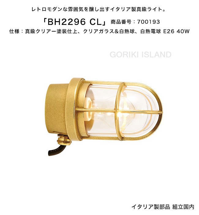 【この商品は予約・入荷待商品です】BH2296 CL 商品番号:700193/仕様:クリアー塗装仕上げ、クリアガラス、白熱電球 E...