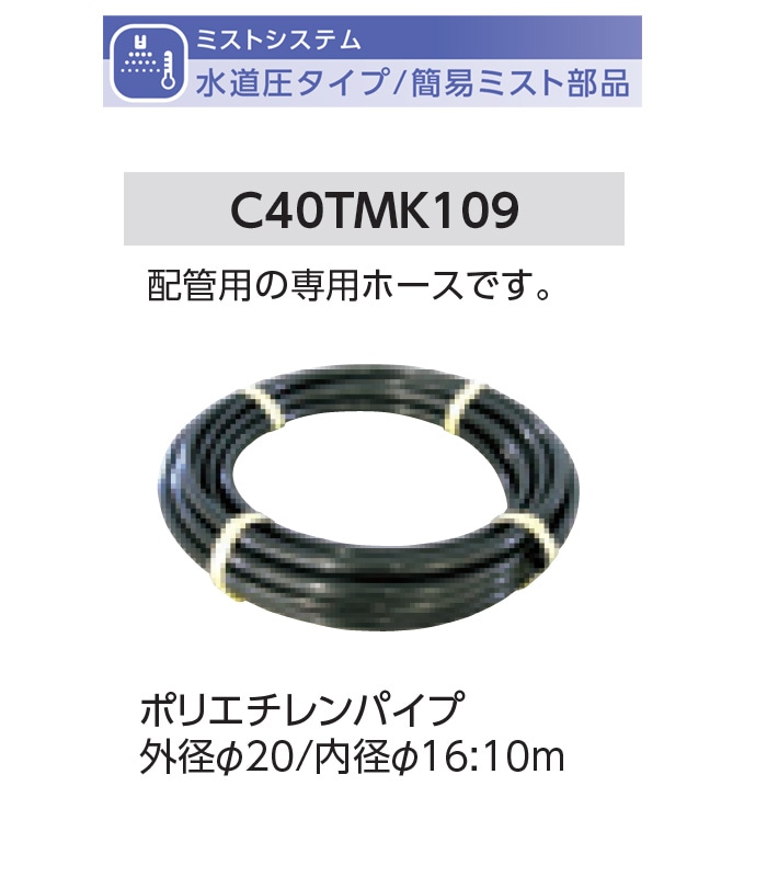 ポリエチレンパイプ 外径φ20/内径φ16:10m 型式名:C40TMK109【簡易ミストオプション部品(水道圧タイプ) グローベ...
