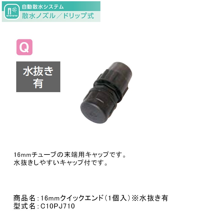 16mmクイックエンド(1個入)※水抜き有 型式名:C10PJ710【16mmドリップチューブ用オプション グローベン社正規販売...