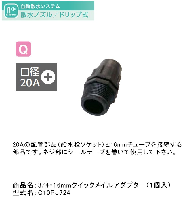 3/4・16mmクイックメイルアダプター(1個入)型式名:C10PJ724【16mmドリップチューブ用オプション グローベン社正...