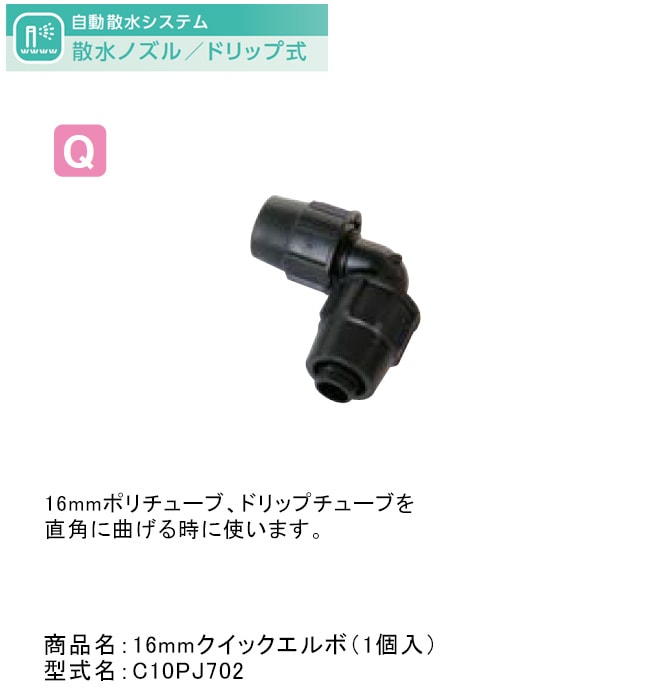 16mmクイックエルボ(1個入)型式名:C10PJ702【16mmドリップチューブ用オプション グローベン社正規販売店】