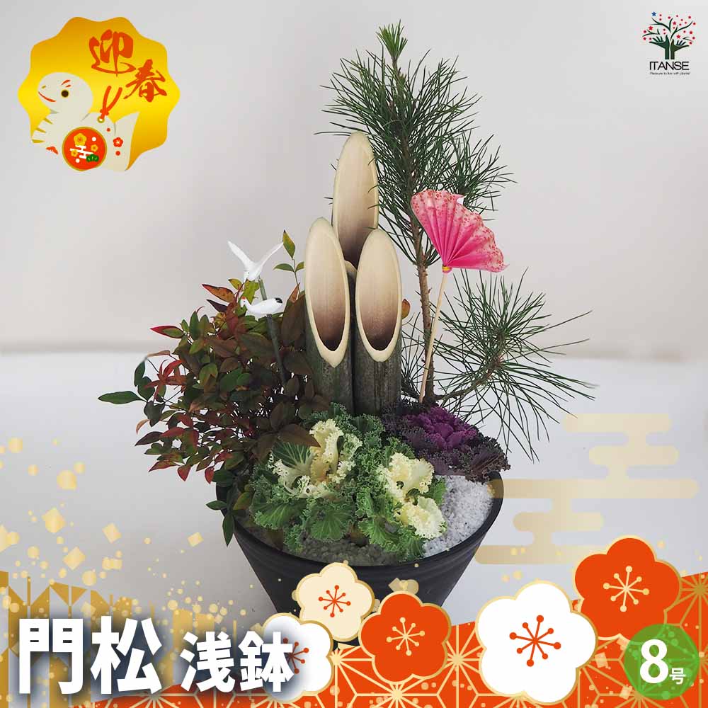 門松(かどまつ)紅白葉牡丹【正月飾り 8号浅鉢寄せ植え】
