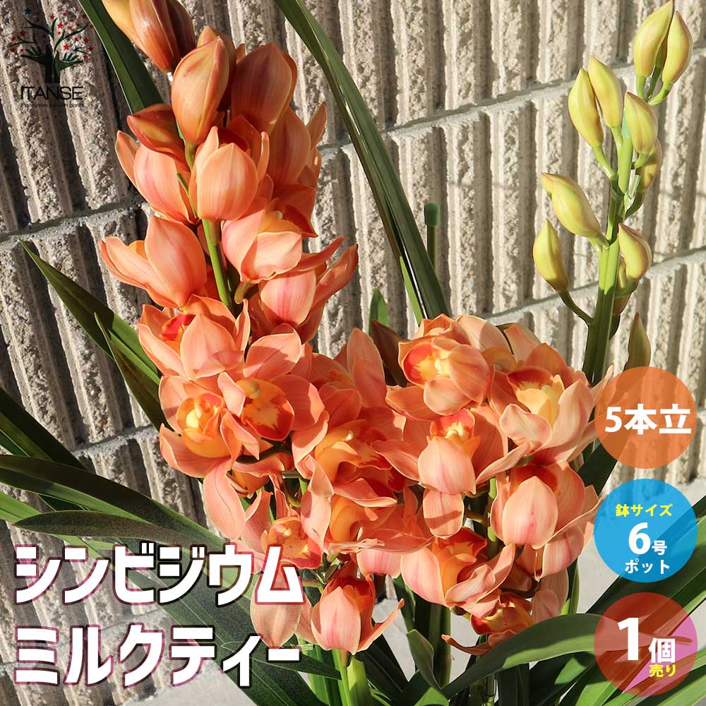 シンビジウム ピエレッテ ミルクティー【4本~5本立 6号鉢 花苗/洋ラン/1個売り】