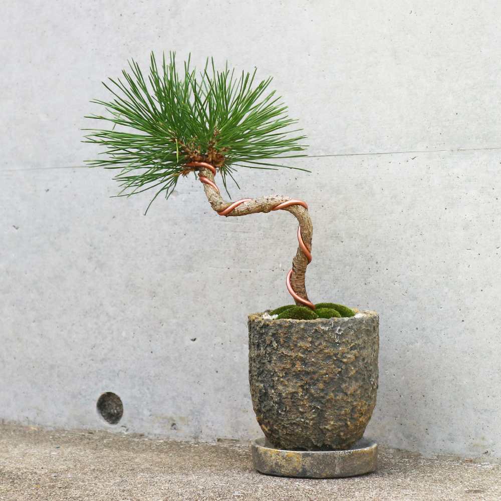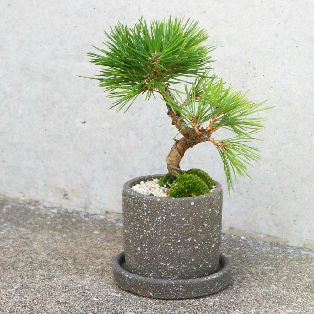 黒松・曲付け小盆栽【庭木 8cmわびさびグレー素焼鉢/1個売り】