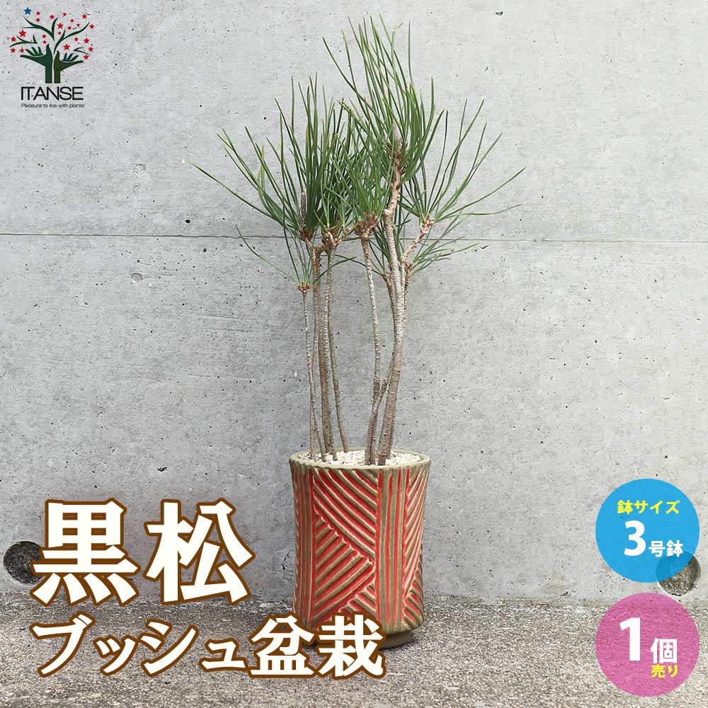 黒松ブッシュ小盆栽【庭木 9cmオシャレ陶器鉢(緑目渋茶陶器鉢)/1個売り】